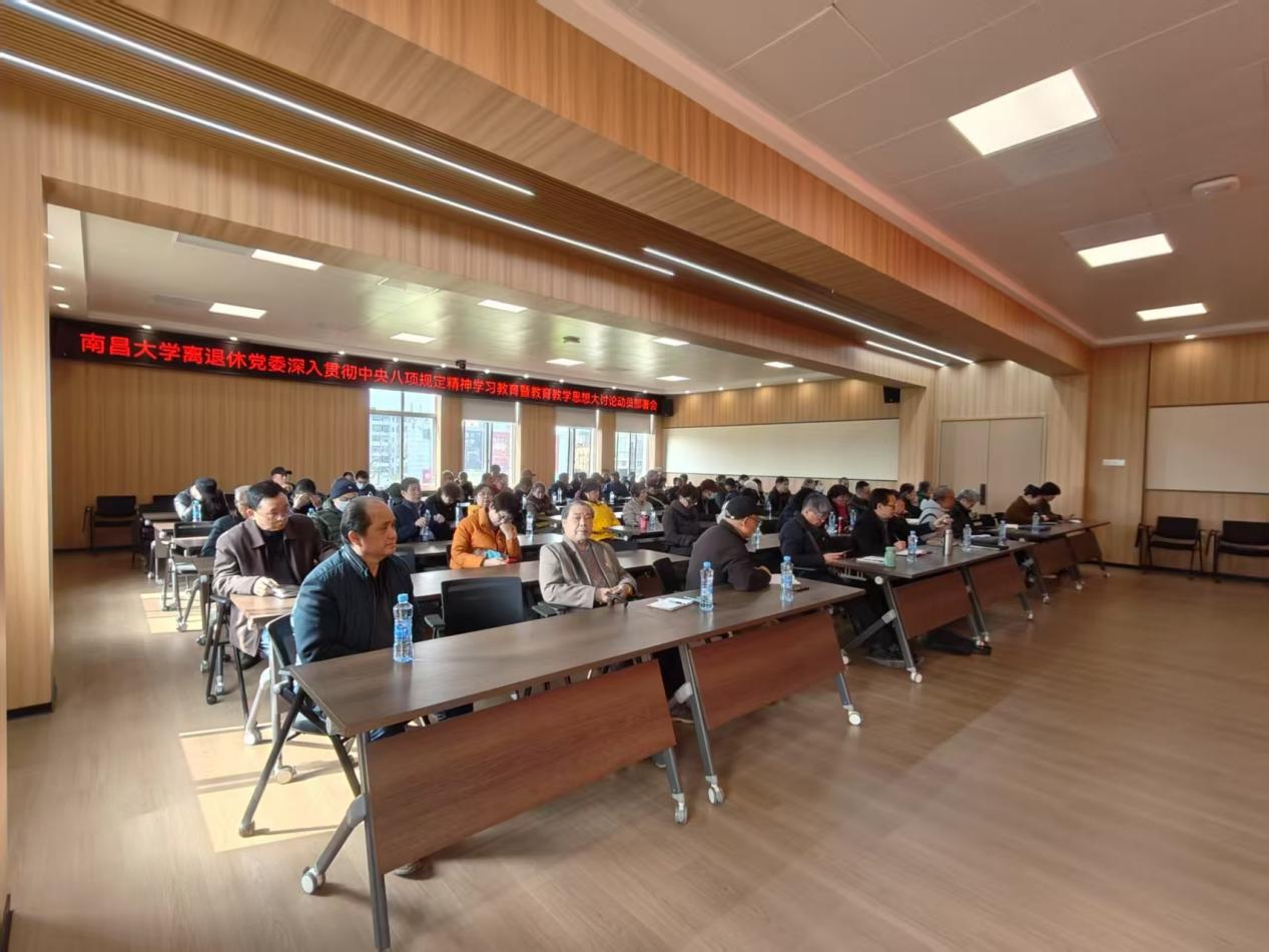 会议学习了《中共中央办公厅关于在全党开展深入贯彻中央八项规定精神学习教育的通知》《江西省委办公厅关于开展深入贯彻中央八项规定精神学习教育的工作方案》精神,传达了罗嗣海书记在校党委常委会启动部署深入贯彻中央八项规定精神学习教育会议上的讲话主要精神,部署离退休党委贯彻落实工作。