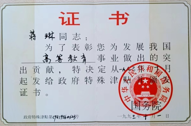 蒋琳老师1930年1月出生,1955年毕业于武汉大学化学系。按照家里当时的经济条件,是难以上大学的。四年的大学学习中,一切费用(包括伙食费〉全由国家负担,他常常说我非常感恩我们的党,我们的国家,给了我学习改变命运的机会,我要忠诚党的教育事业,做个好老师。