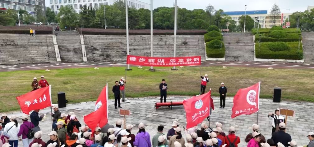 本网讯(离退休工作处)金秋时节,天朗气清。为弘扬中华民族尊老、敬老、爱老的优秀传统美德,丰富离退休老同志的精神文化生活,促进老同志身心健康,10月20日,在重阳节来临之际,南昌大学离退休工作处、第一附属医院离退办、第二附属医院离退办和附属康复医院退休办四个部门联合举办了“健步前湖,乐享秋韵”为主题的老同志校园健步走活动。校党委常委、副校长潘秉兴,校党委常委、统战部部长谈振兴,校本部和附属医院的400余名老同志参加活动。