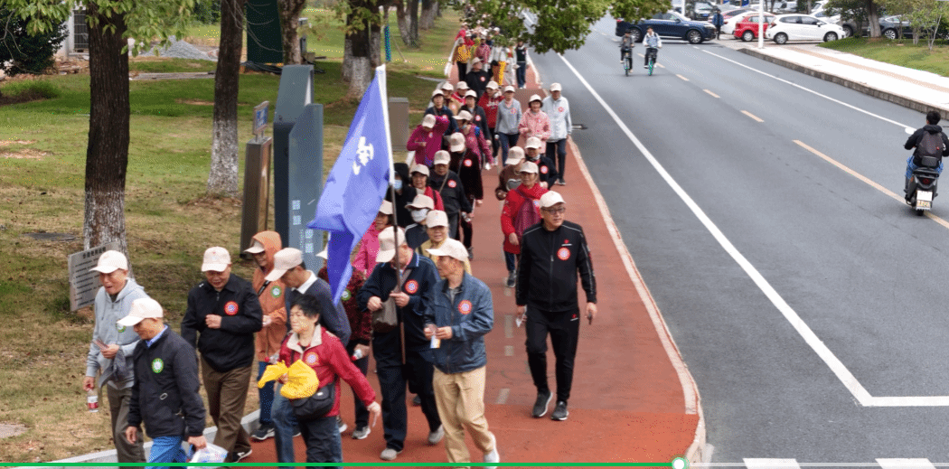 活动当天,久违的秋凉如期而至。前湖校区内洋溢着浓厚的喜庆氛围,五四大道两旁香樟翠绿,景色宜人。活动正式开始后,老同志们精神饱满、步伐稳健,开启了重温校园的健步之旅。大家边走边聊,欢声笑语不绝于耳,有的回顾往昔教书育人的岁月,有的畅谈国家发展成就,有的分享退休生活的点滴趣事,有的则驻足欣赏校园秋色。不少老同志纷纷举起手机拍照留念,记录下重逢的喜悦与温馨。每个人脸上都洋溢着幸福的笑容,展现出积极健康、老有所乐的精神风貌。