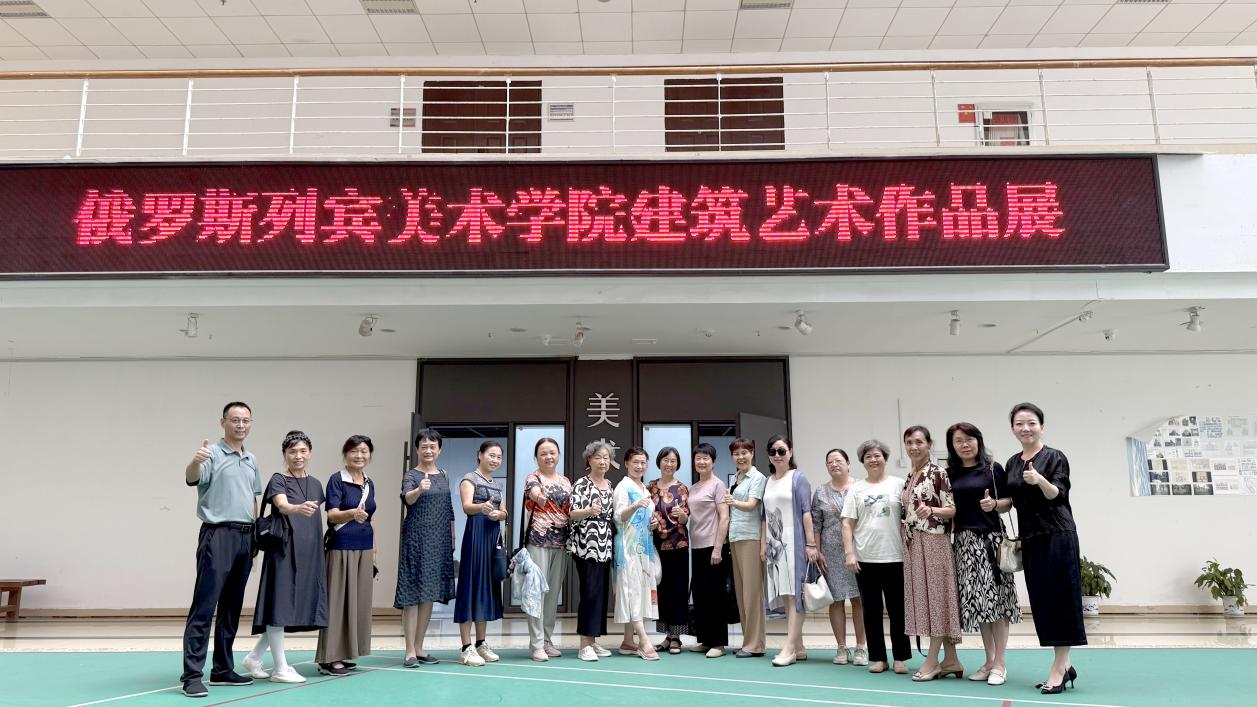 在展厅内,李枝秀院长结合展品内容,为老同志们进行了系统而深入的现场讲解,并就素描技法、建筑设计与艺术创新等主题与老同志们展开交流。老同志们通过认真聆听讲解,仔细观摩展品,对列宾美术学院师生扎实的艺术功底、严谨的创作态度以及对历史文化的敬畏精神表示高度赞赏。大家纷纷表示,此次参观不仅是一场视觉盛宴,更是一次深刻的文化体验,既开阔了眼界,也激发了对建筑艺术与文化遗产保护的兴趣与思考。